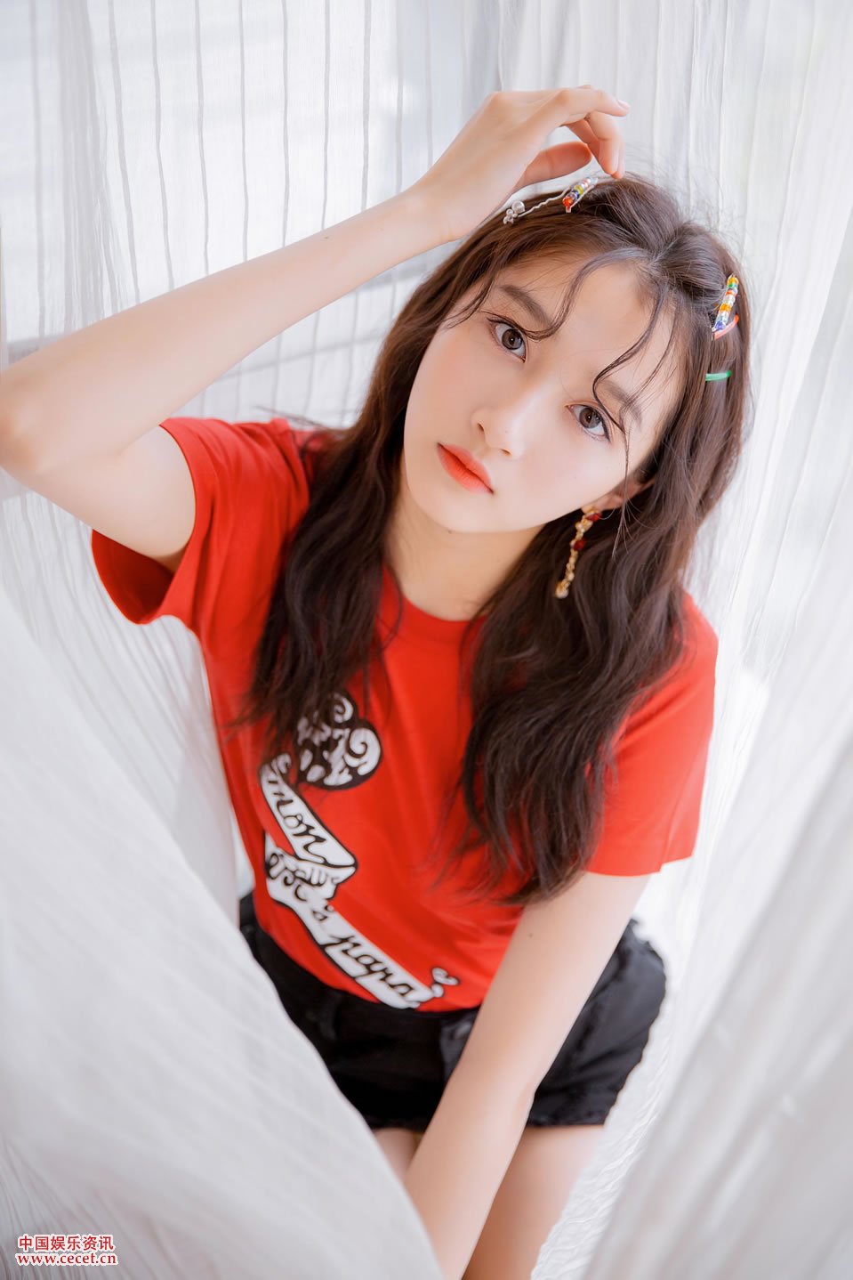 關(guān)曉彤穿紅色T恤超短裙活力滿(mǎn)滿(mǎn)少女氣息十足