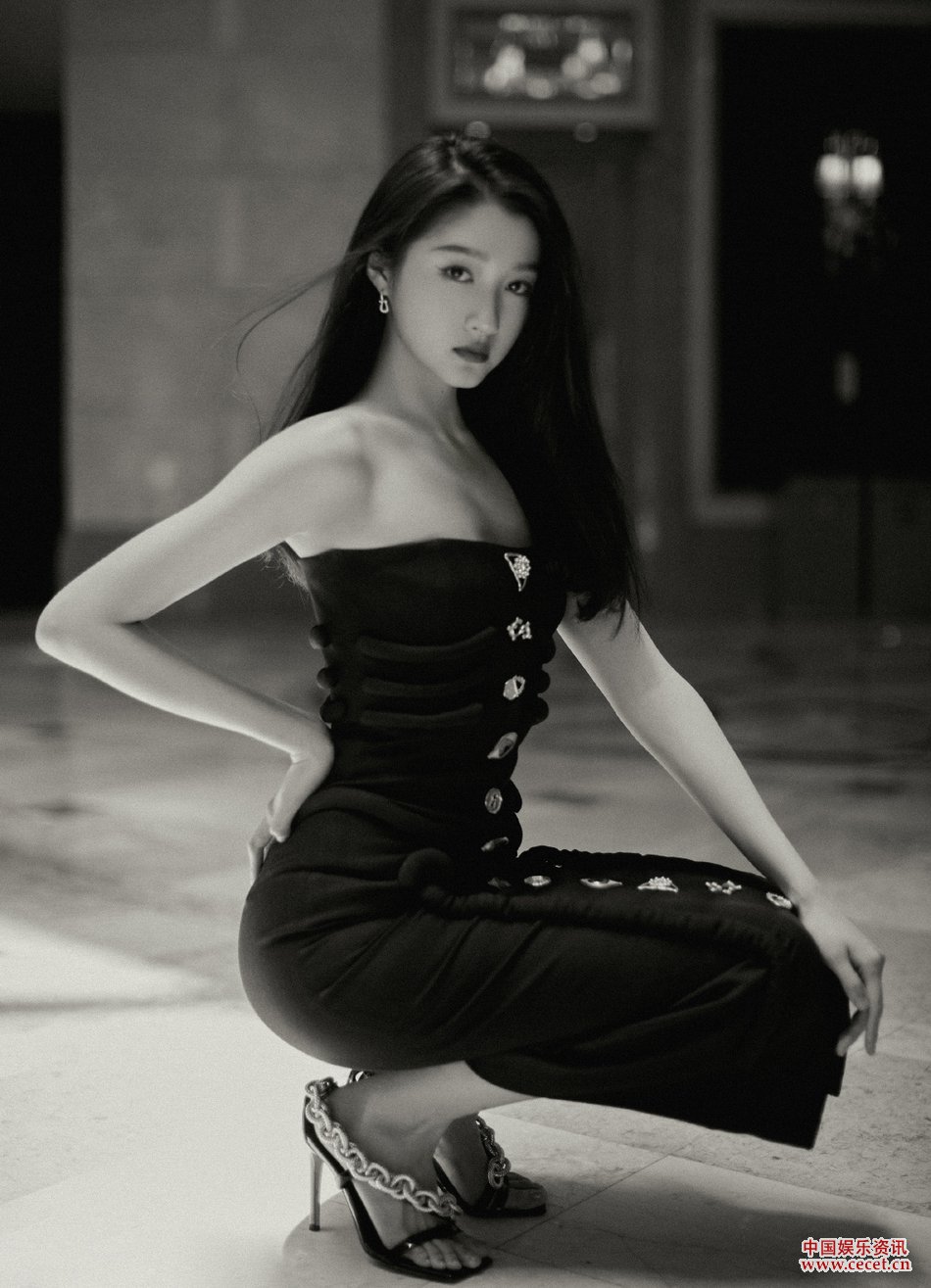 關(guān)曉彤抹胸魚(yú)骨裙冷艷性感 長(cháng)發(fā)飄散氣場(chǎng)十足