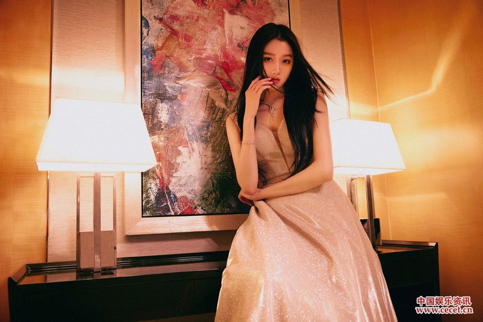 關(guān)曉彤香檳色水光裙 繁星點(diǎn)點(diǎn)煥現青春光芒