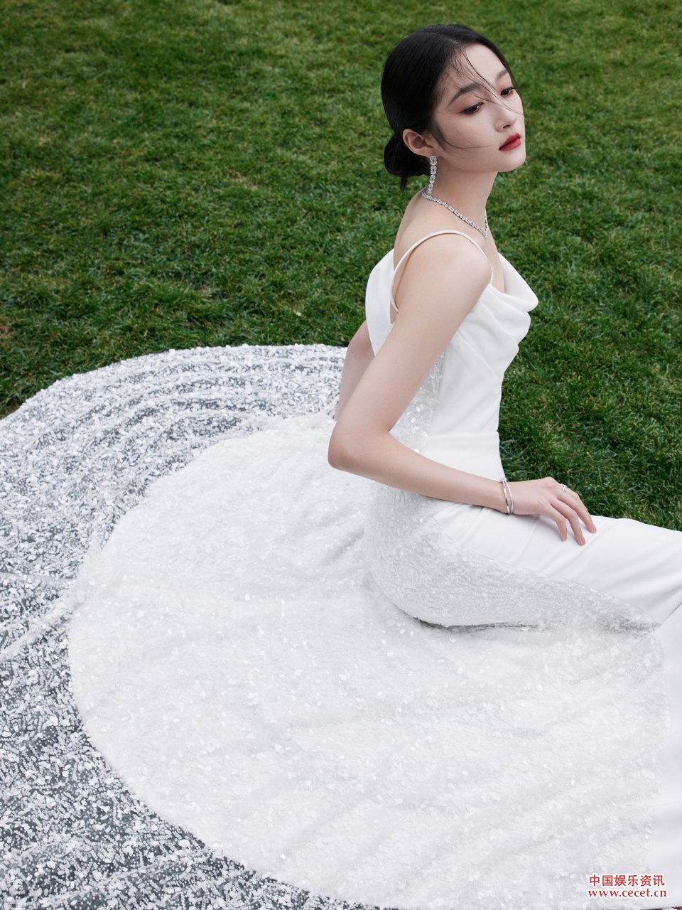 關(guān)曉彤純白人魚(yú)裙溫婉大方 臻美珠寶陽(yáng)光暖意