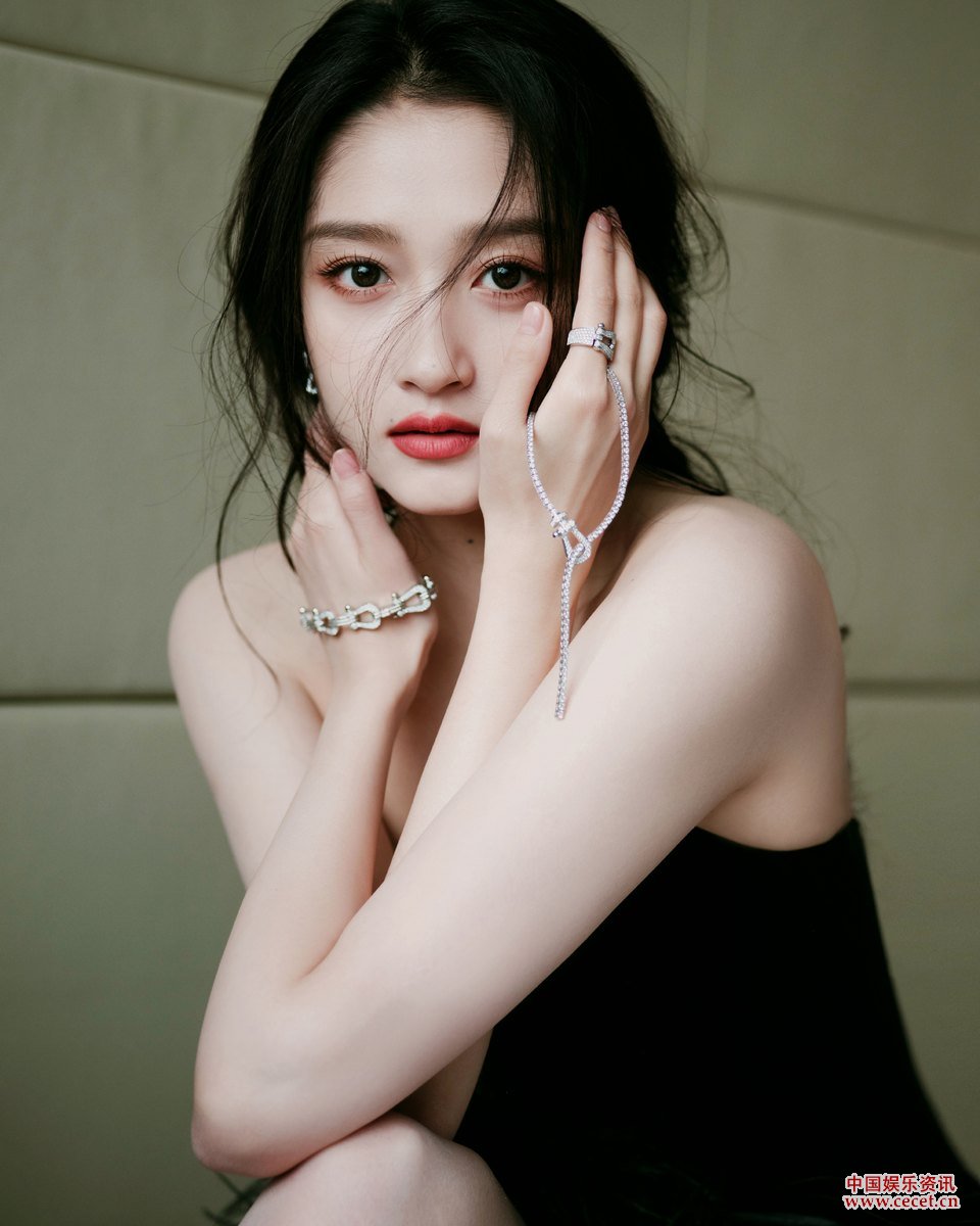 關(guān)曉彤黑色絲絨羽毛裙 暢享盛放絢爛光華