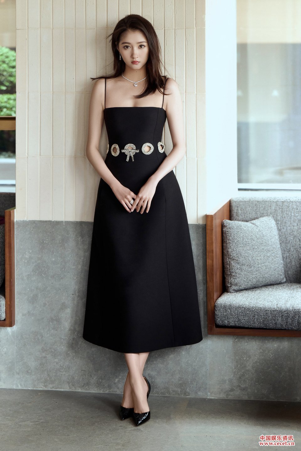關(guān)曉彤吊帶黑裙利落率性 腰間鏤空點(diǎn)綴璀璨