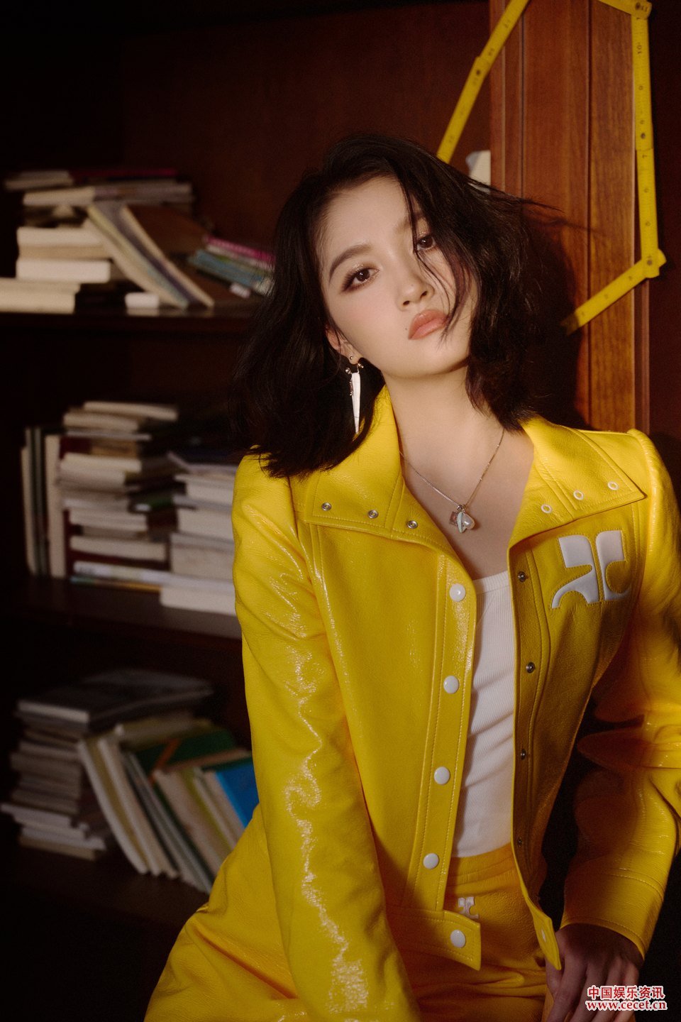 關(guān)曉彤黃色亮面機車(chē)夾克 明黃活力喚醒多巴胺
