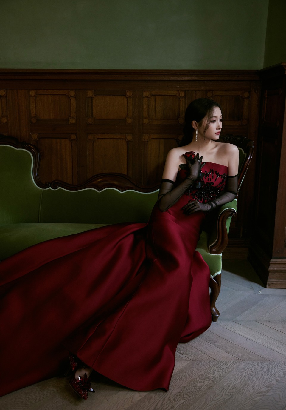 關(guān)曉彤暗夜玫瑰復古優(yōu)雅 于黑夜秘境中綻放