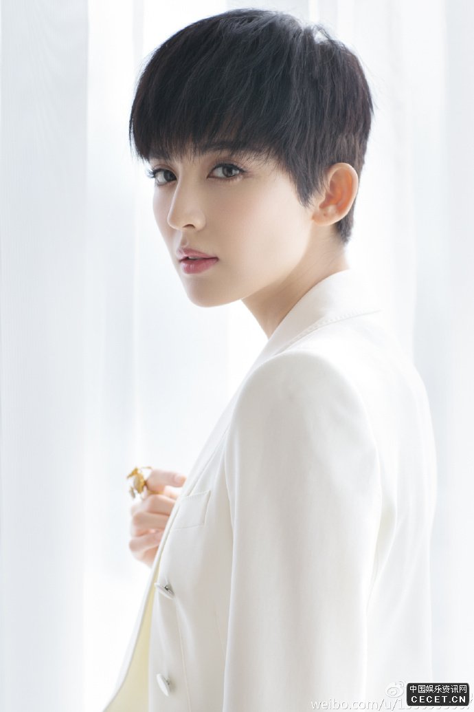 娜扎白西裝參加活動(dòng) 頭發(fā)剪得更短顯得很利落