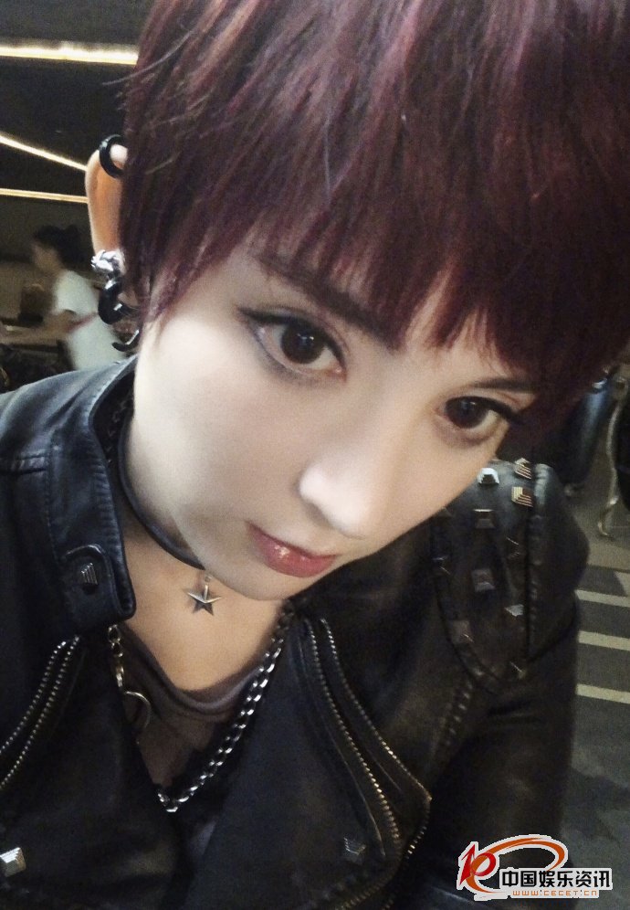 娜扎紅色短發(fā)照 畫(huà)著(zhù)淡煙熏妝看起來(lái)酷炫靚麗