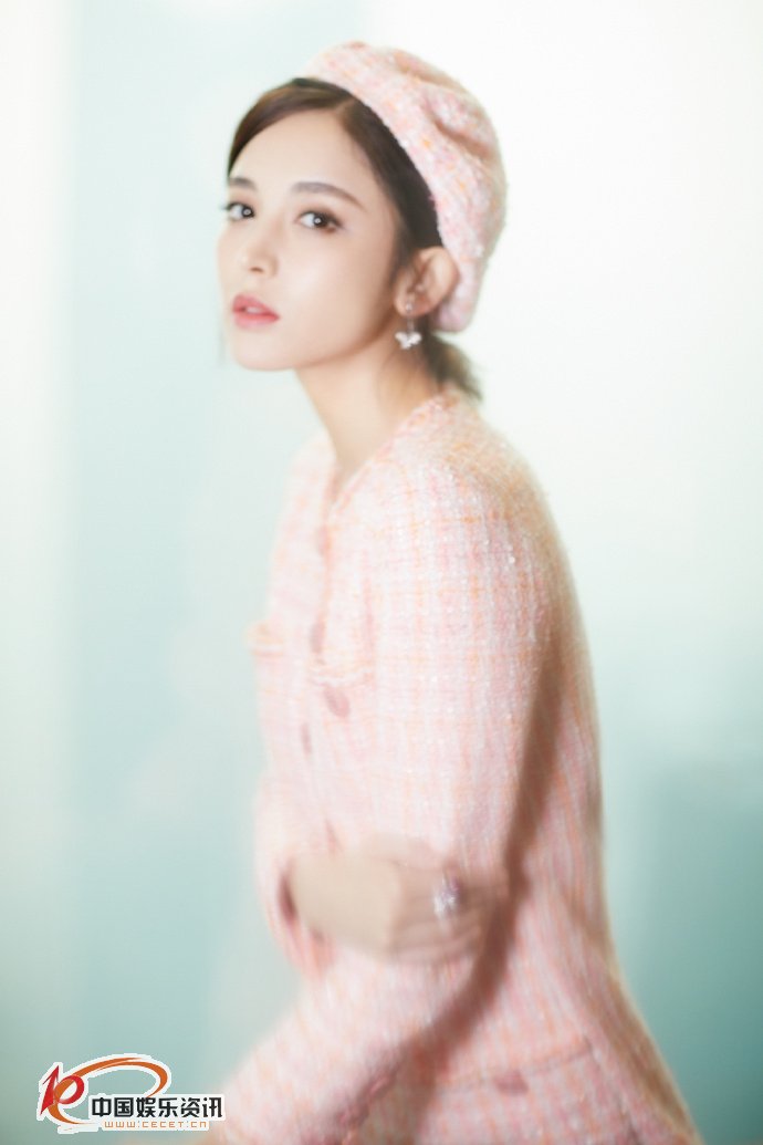 娜扎粉色復古衣裙美照 雙手插兜站姿霸氣