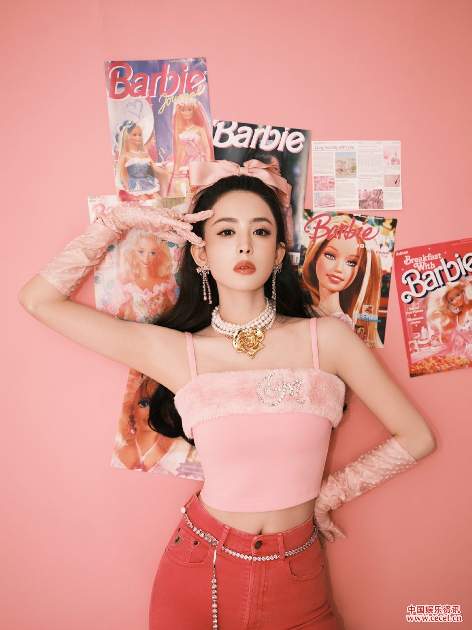 娜扎粉色甜酷公主 盡顯婀娜身姿和溫婉含蓄美