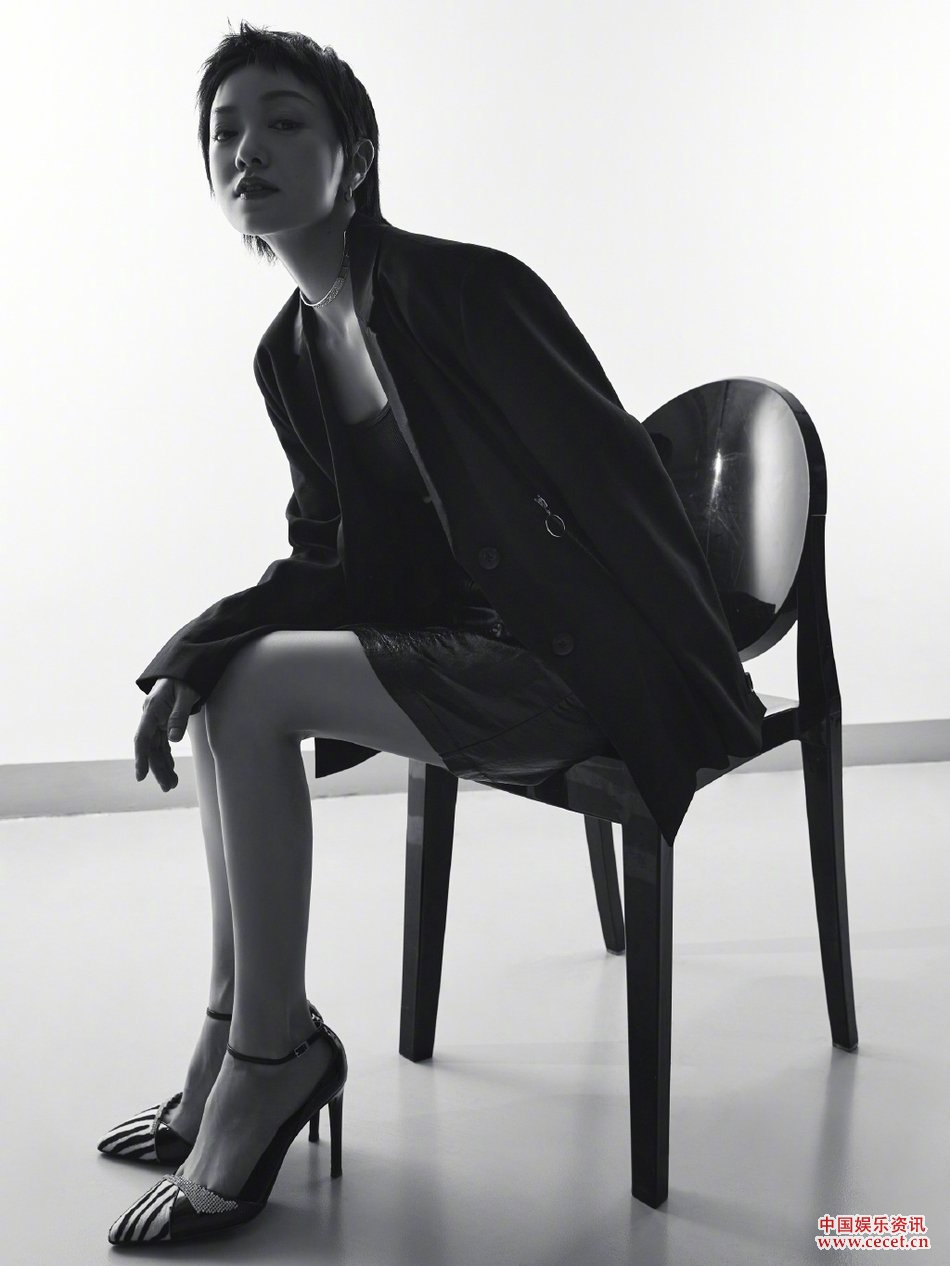 郭采潔黑白寫(xiě)真 黑色西裝外套秀出修長(cháng)美腿