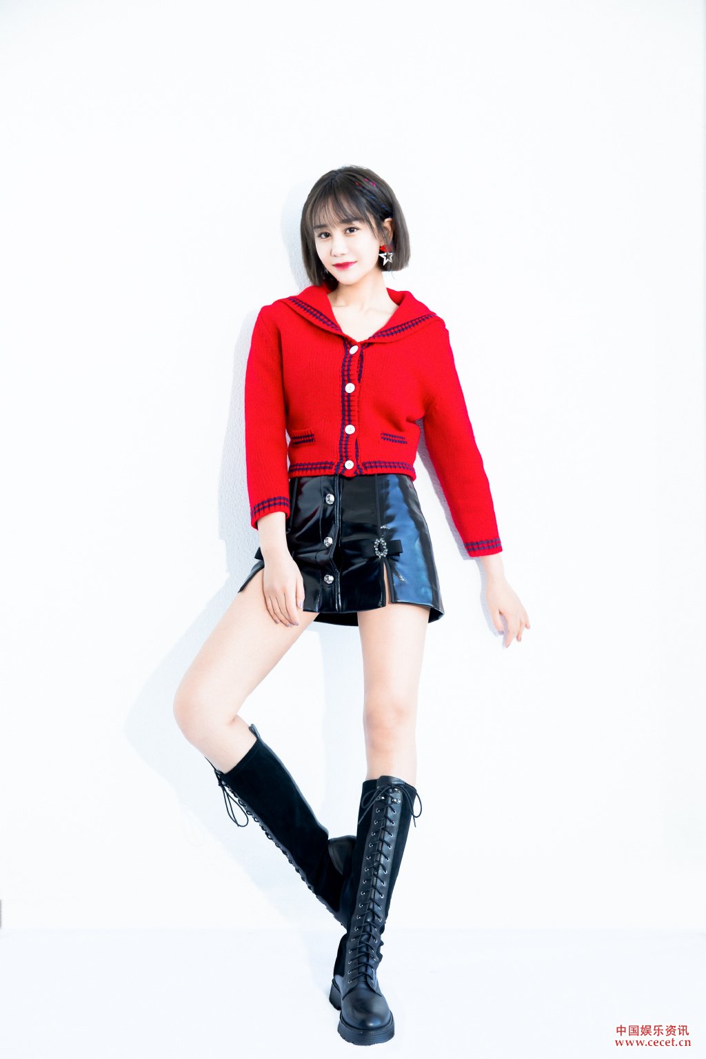 海陸紅上衣黑色皮短褲 沉淀自信盡情綻放