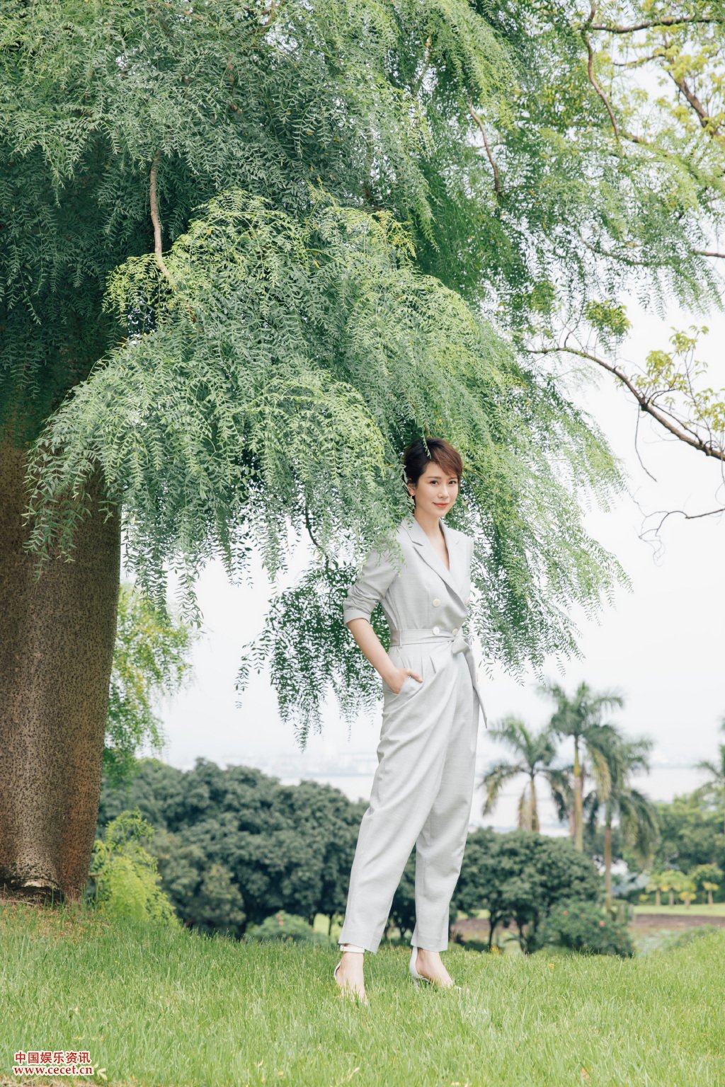 海清灰套裝置身綠叢中 甜美氣質(zhì)大方知性