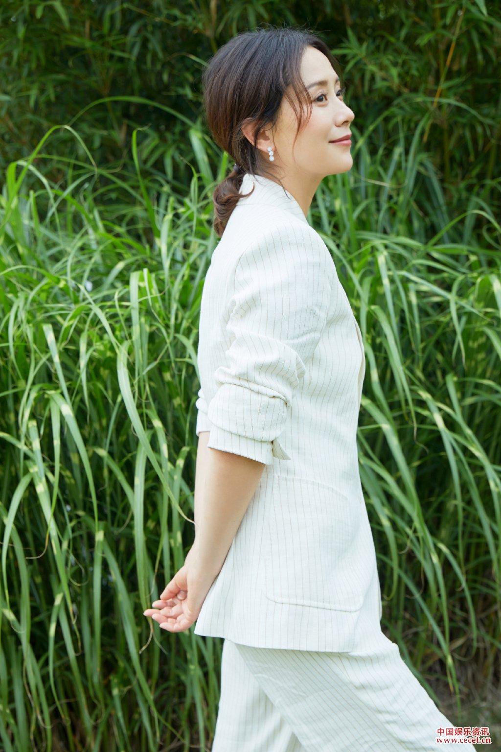 海清白色西服元氣滿(mǎn)滿(mǎn) 翠綠風(fēng)景感受春意盎然