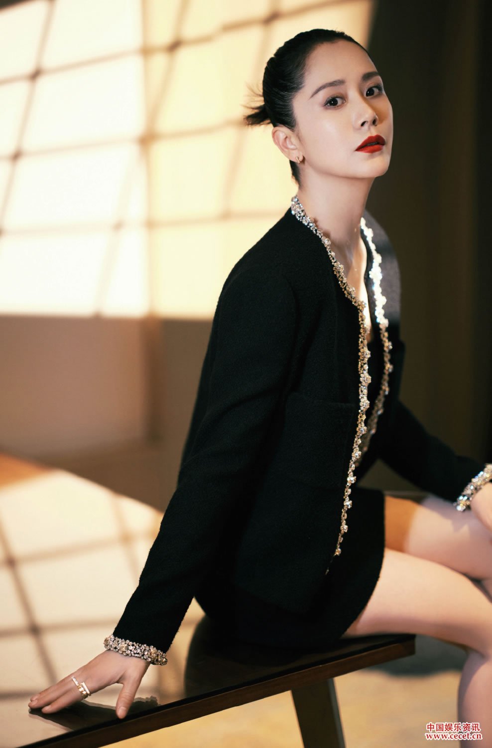 海清復古紅唇眼神清冷 光影間盡顯優(yōu)雅貴氣