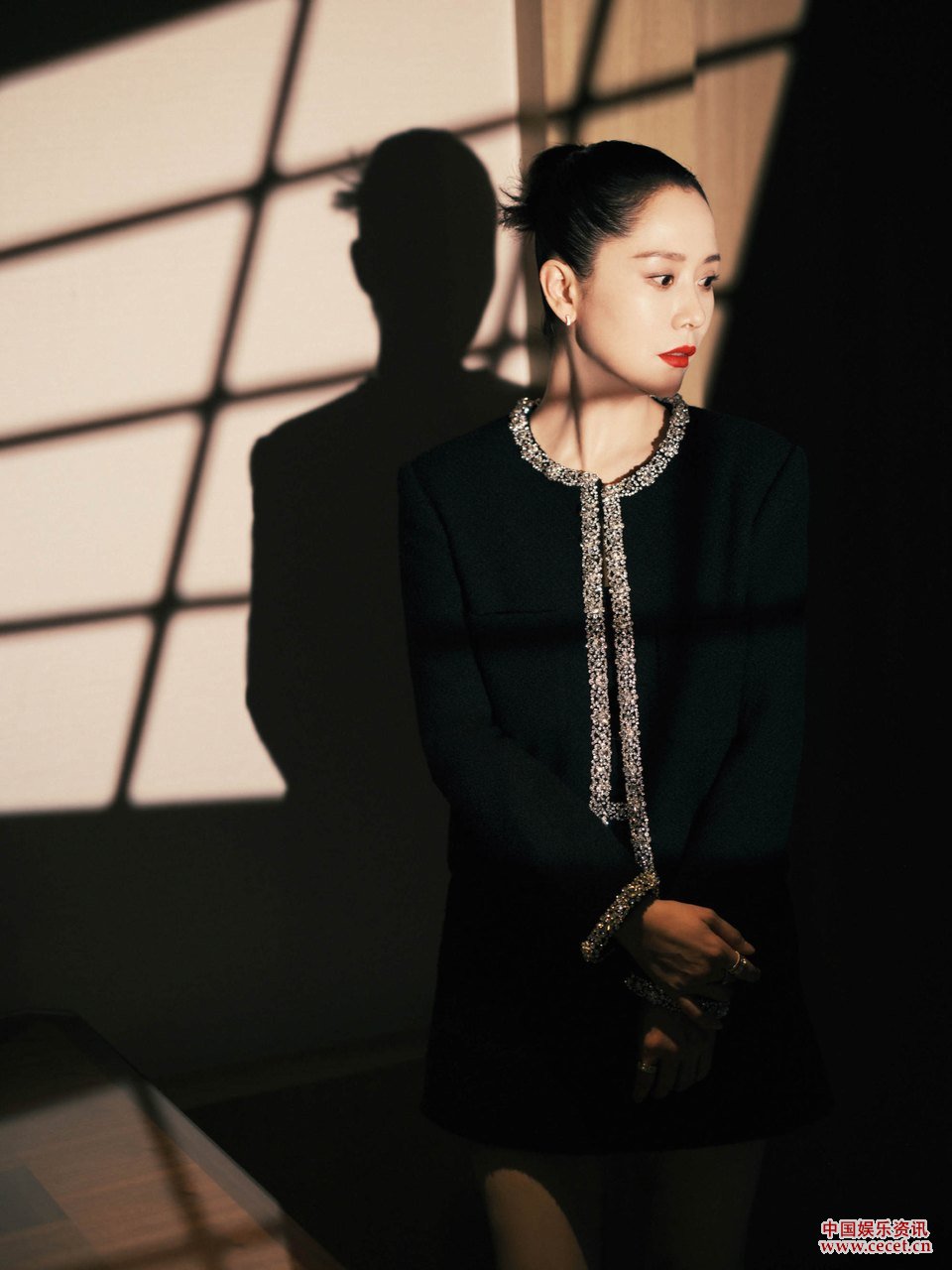 海清復古紅唇眼神清冷 光影間盡顯優(yōu)雅貴氣