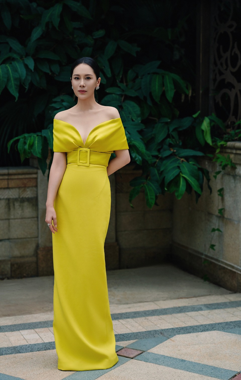 海清明亮黃色抹胸長(cháng)裙 映襯著(zhù)知性與優(yōu)雅