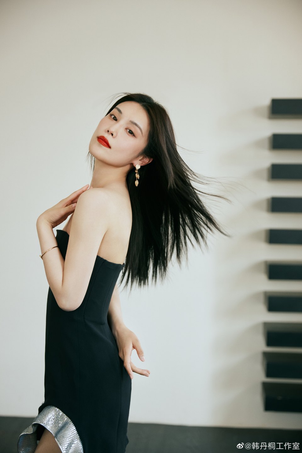 韓丹桐黑銀卷邊禮裙亮鉆褲管靴超A搭配冷御酷颯