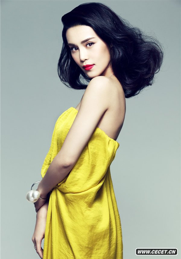 韓丹彤烈焰紅唇妝寫(xiě)真 柔發(fā)飛揚嫵媚動(dòng)人