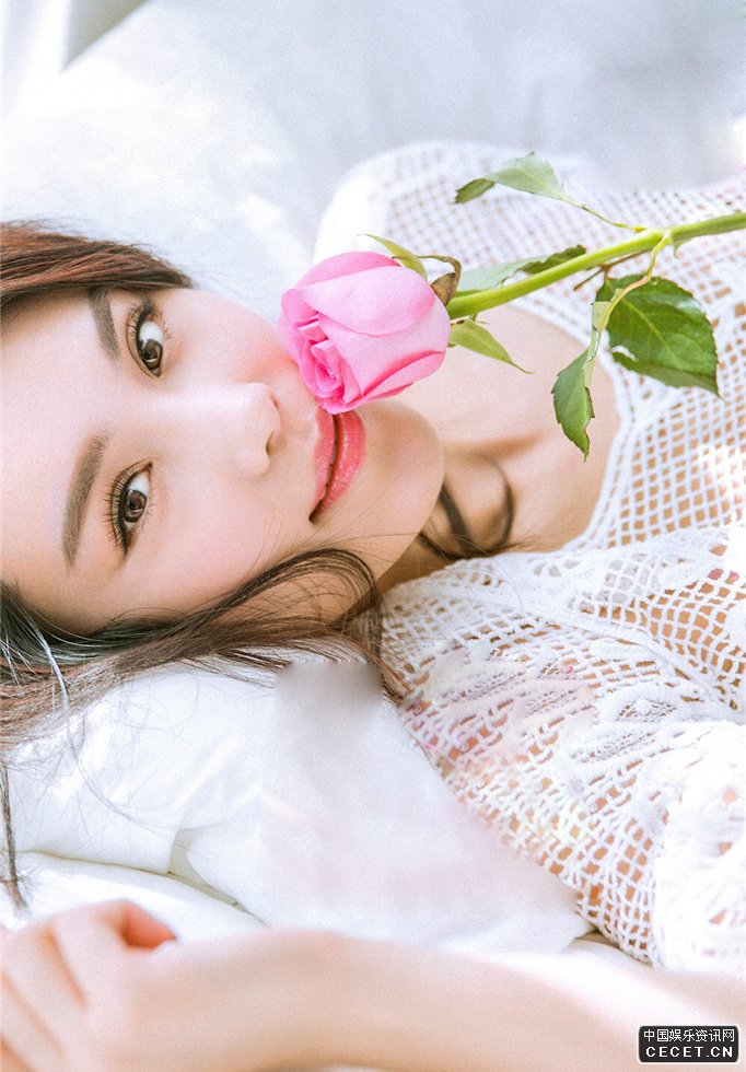 韓丹彤寫(xiě)真薄紗鏤空衣 蕾絲花邊若隱若現