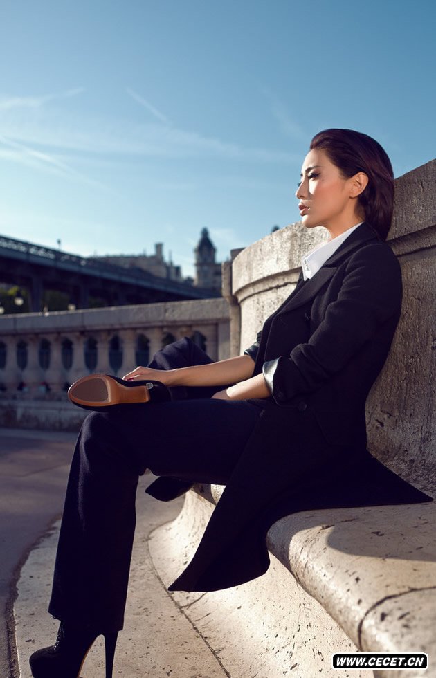 韓曉歐洲拍攝寫(xiě)真 黑色西裝大走中性性感風(fēng)