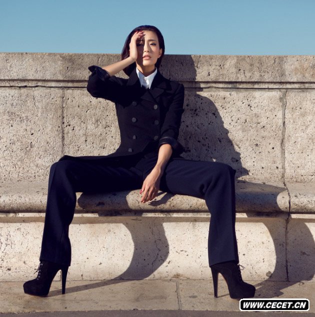 韓曉歐洲拍攝寫(xiě)真 黑色西裝大走中性性感風(fēng)