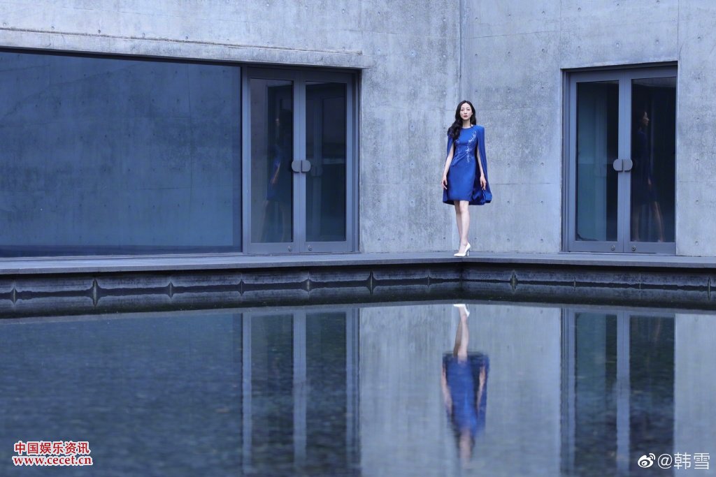 韓雪藍色緊身短裙亮相 目光堅定展輕熟女氣場(chǎng)