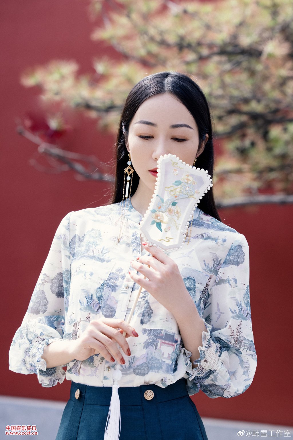 韓雪紅墻角樓手持團扇 一抹東方古典的優(yōu)雅