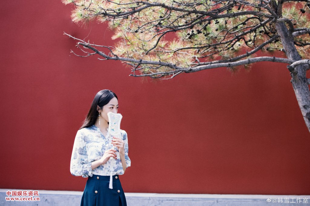 韓雪紅墻角樓手持團扇 一抹東方古典的優(yōu)雅