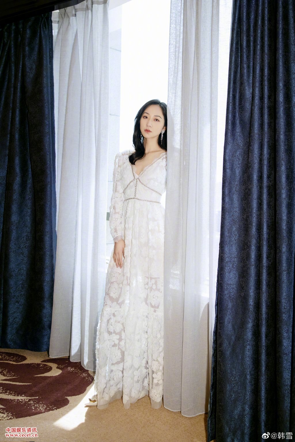韓雪白色長(cháng)裙窗前端坐 淡雅妝容淑女范十足