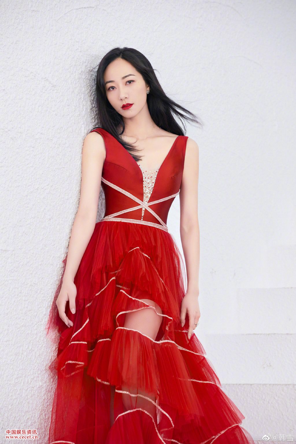 韓雪紅色紗裙溫柔可人 浪漫氛圍美艷超惹眼