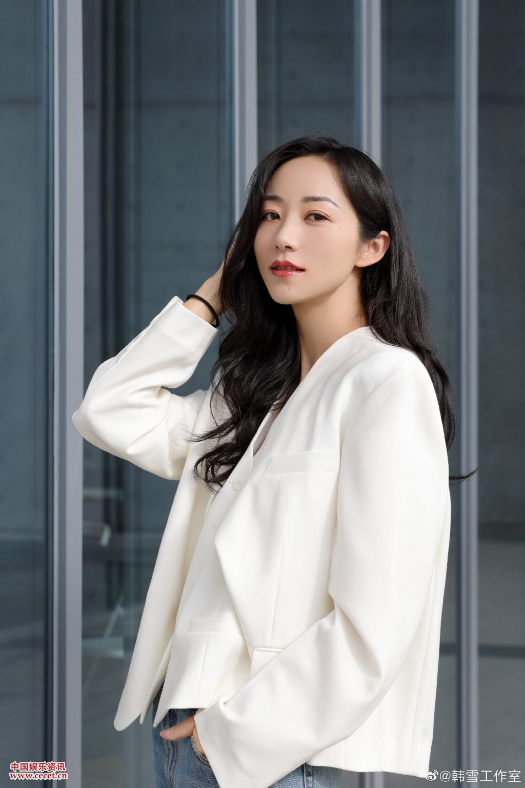 韓雪戶(hù)外清爽美照 藍白色調穿搭側顏溫柔知性