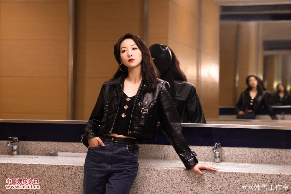 韓雪黑色皮裝酷勁十足 光移影動(dòng)猶在鏡中