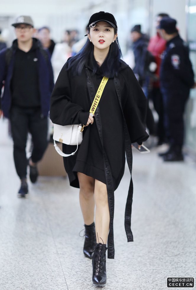 何潔深夜抵滬甜美笑容 露出美腿打扮十分靚麗