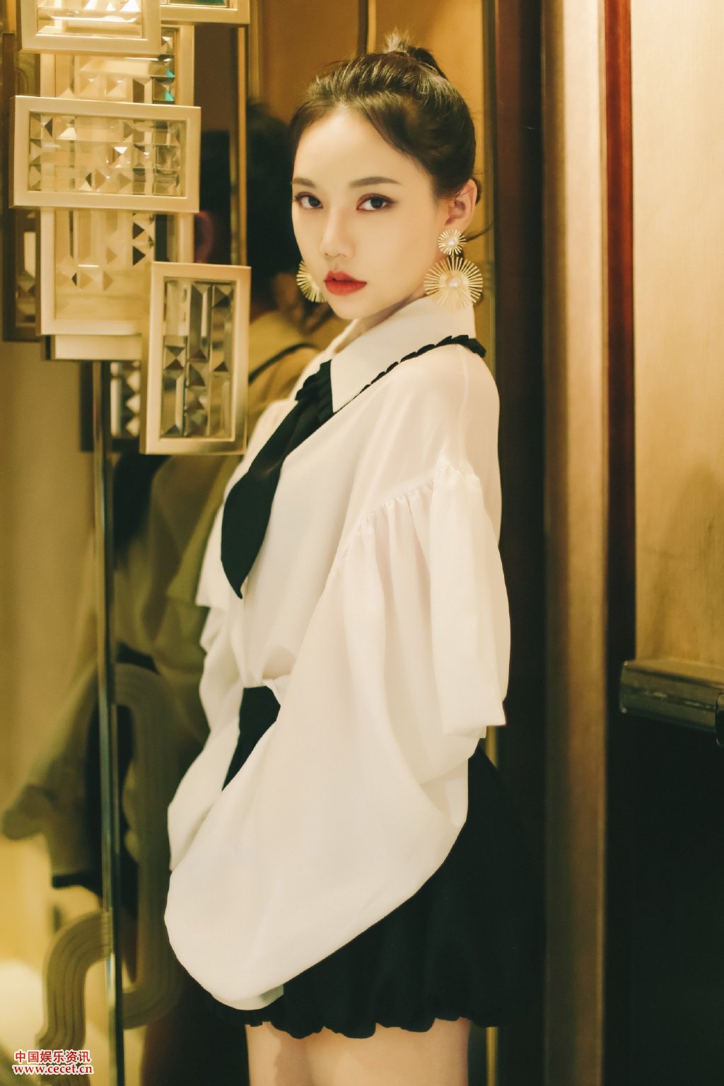 賀敬軒白衫黑短裙美照 夸張的耳環(huán)俏皮可愛(ài)