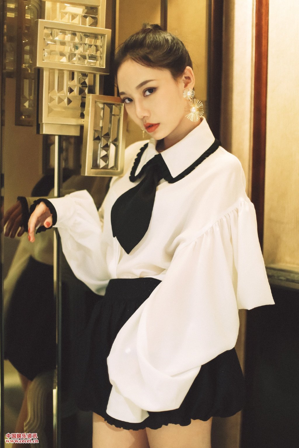 賀敬軒白衫黑短裙美照 夸張的耳環(huán)俏皮可愛(ài)