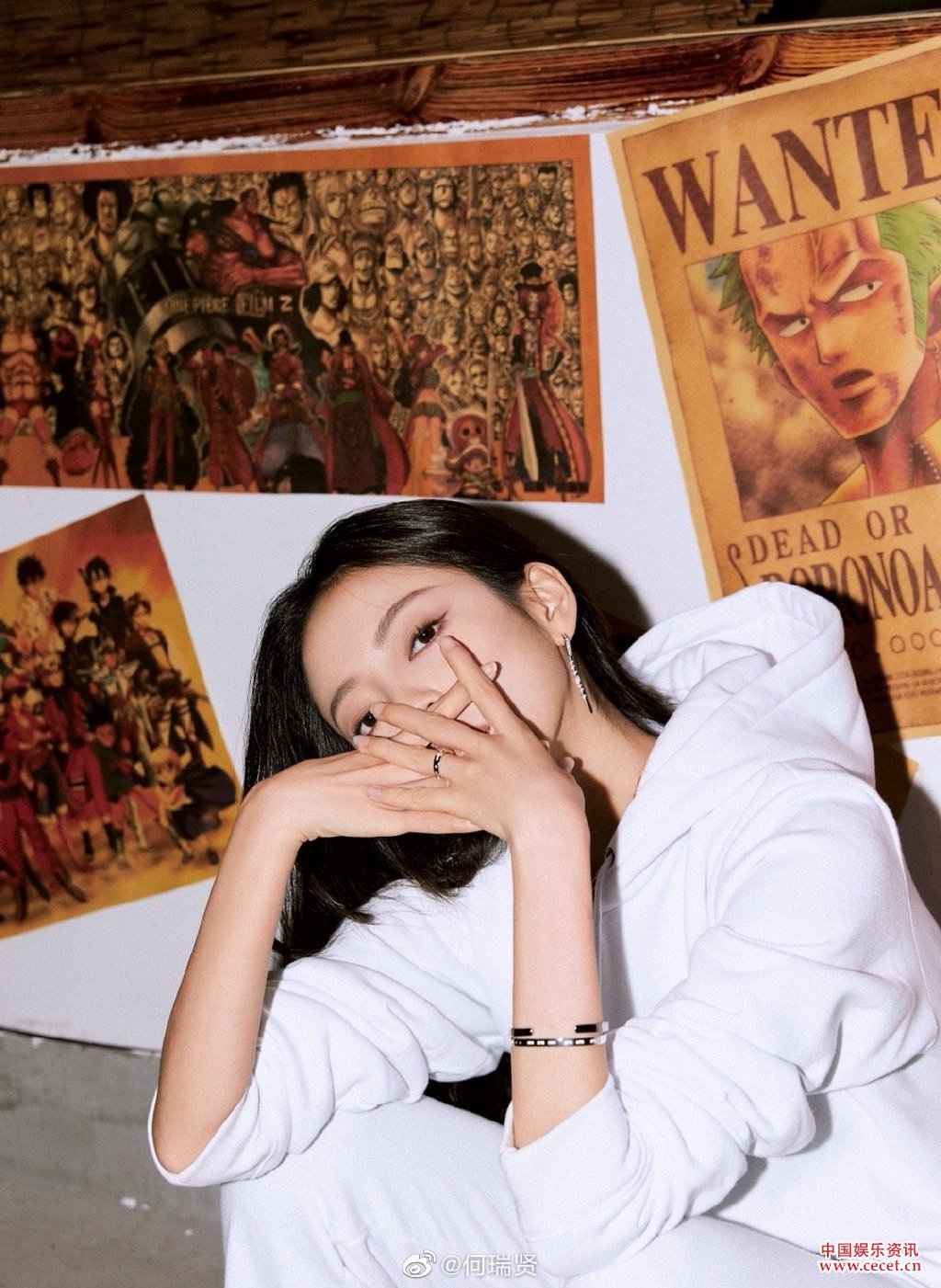 何瑞賢白套裝光彩照人 長(cháng)發(fā)披肩乖巧可愛(ài)