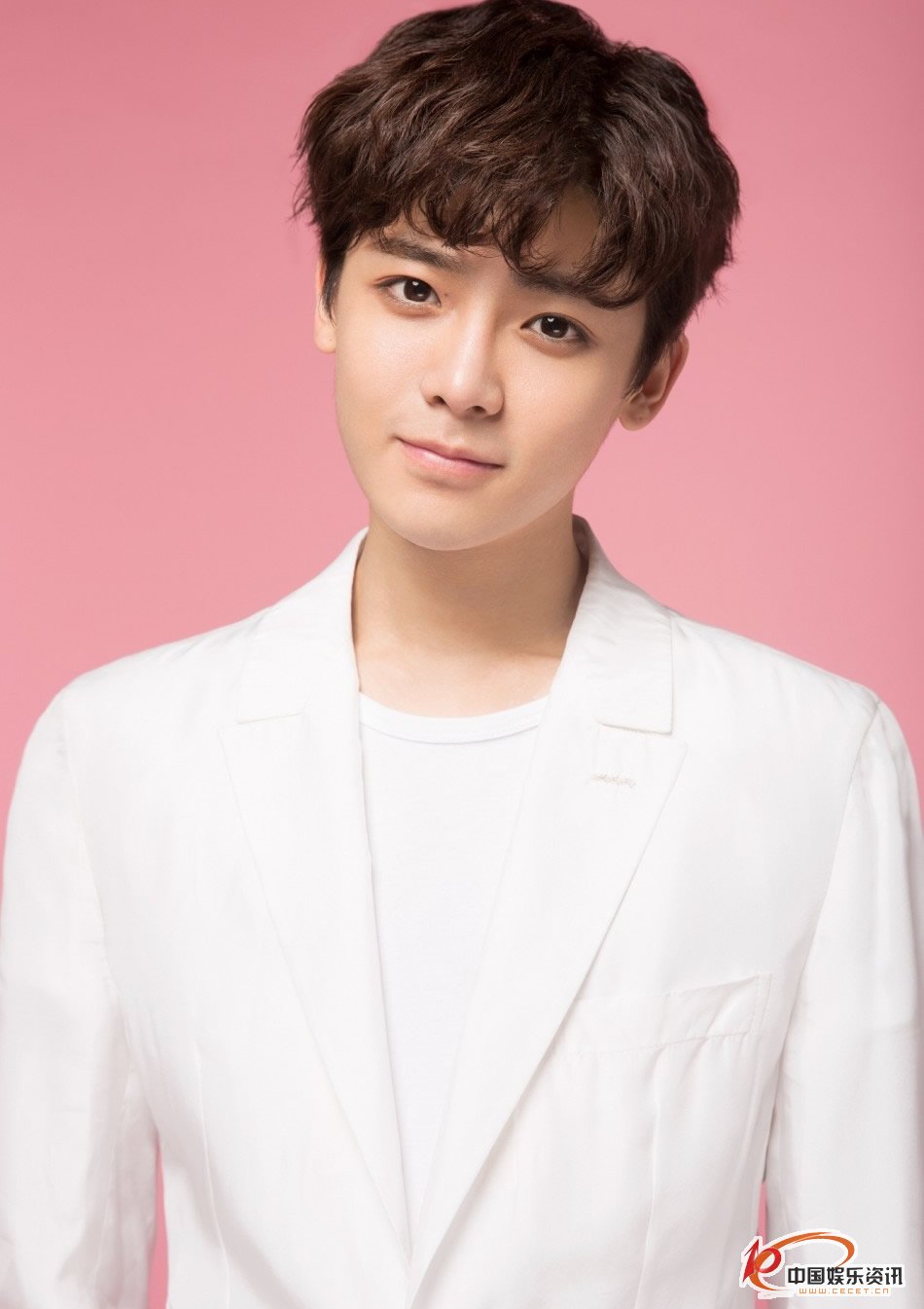 侯明昊以夢(mèng)幻粉為背景 儼然夢(mèng)幻中的白馬王子