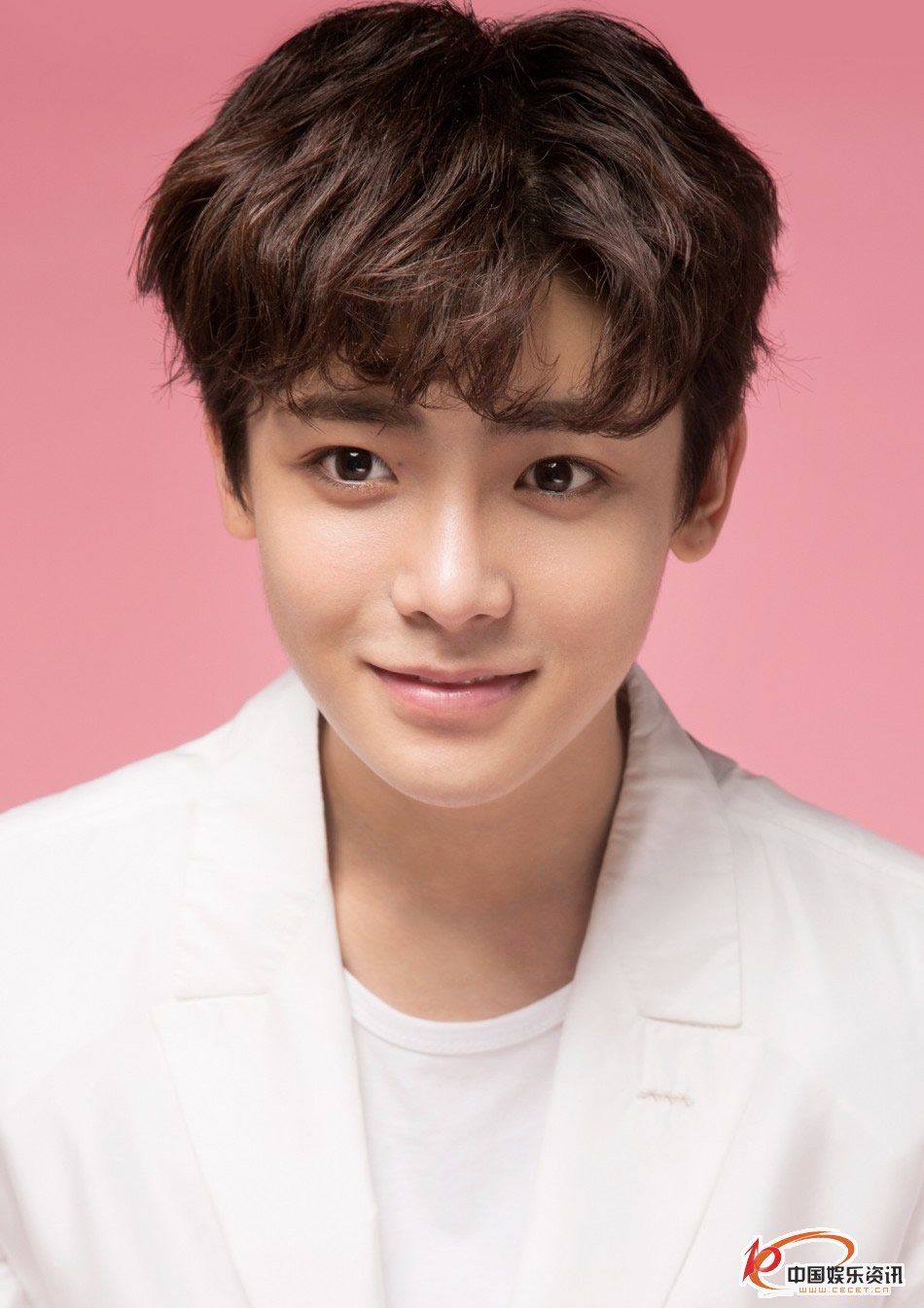 侯明昊以夢(mèng)幻粉為背景 儼然夢(mèng)幻中的白馬王子