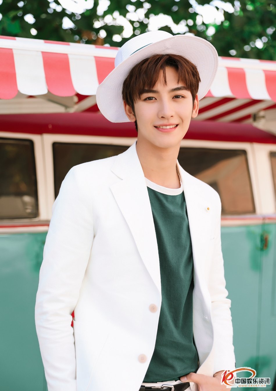 黃俊捷白色西裝搭配綠T干凈清爽簡(jiǎn)約時(shí)尚