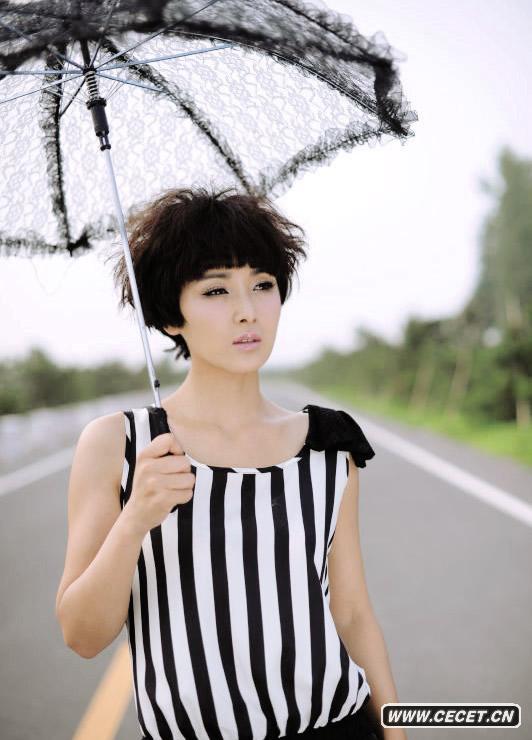 黃曼“斑馬線(xiàn)”清涼寫(xiě)真 眼神迷離暴走公路