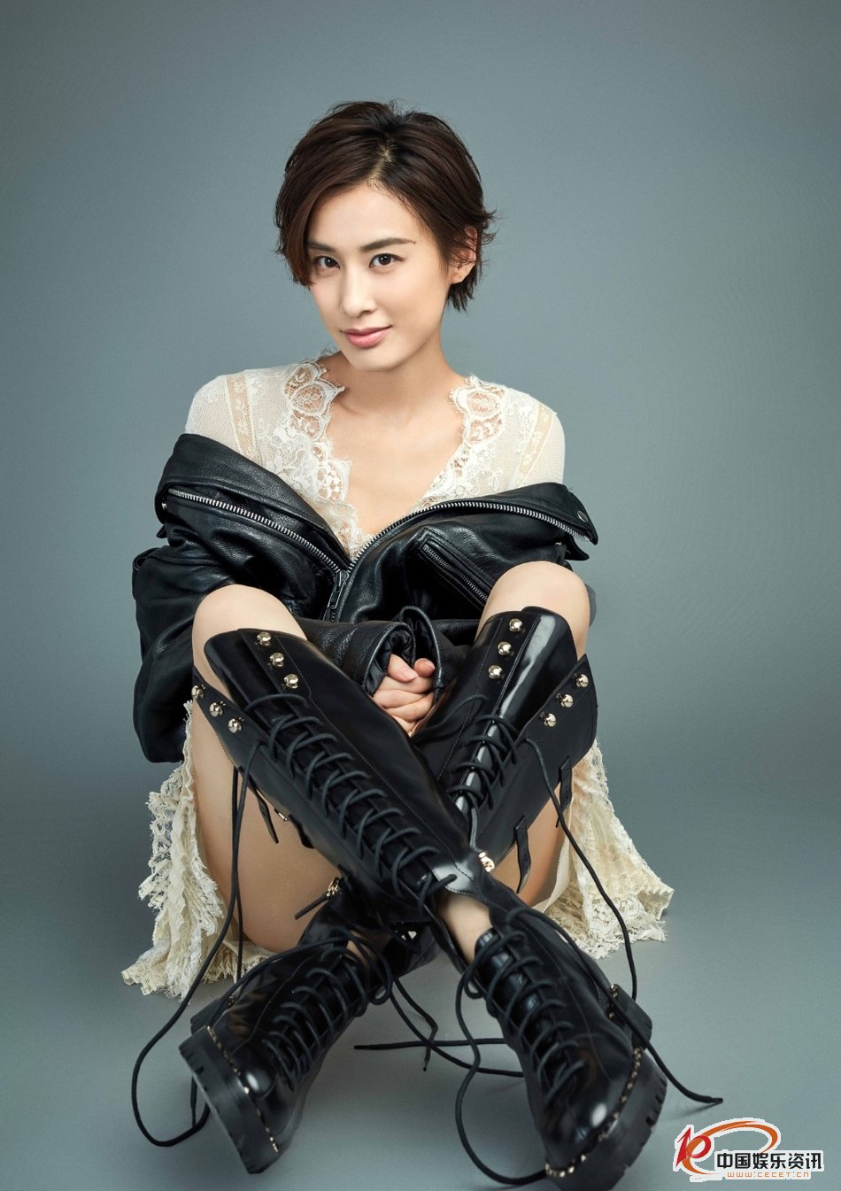 黃圣依短發(fā)黑皮衣外套 盡顯都市女性既視感