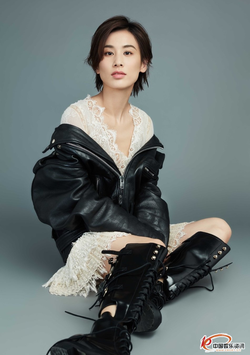黃圣依短發(fā)黑皮衣外套 盡顯都市女性既視感