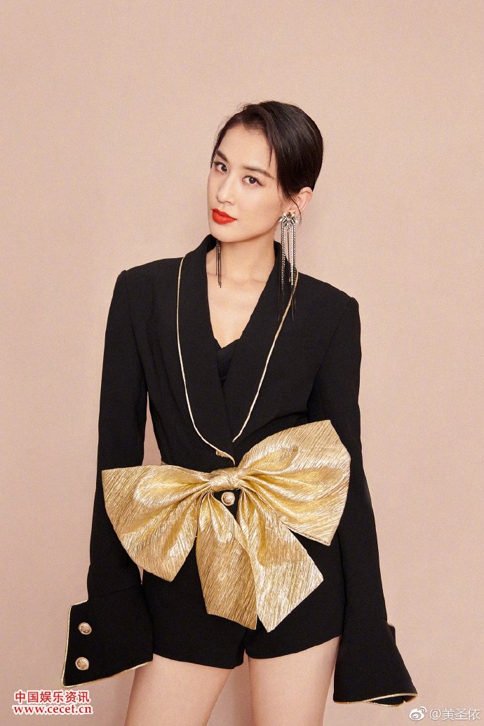 黃圣依身穿黑色修身西裝超短褲大秀纖細長(cháng)腿