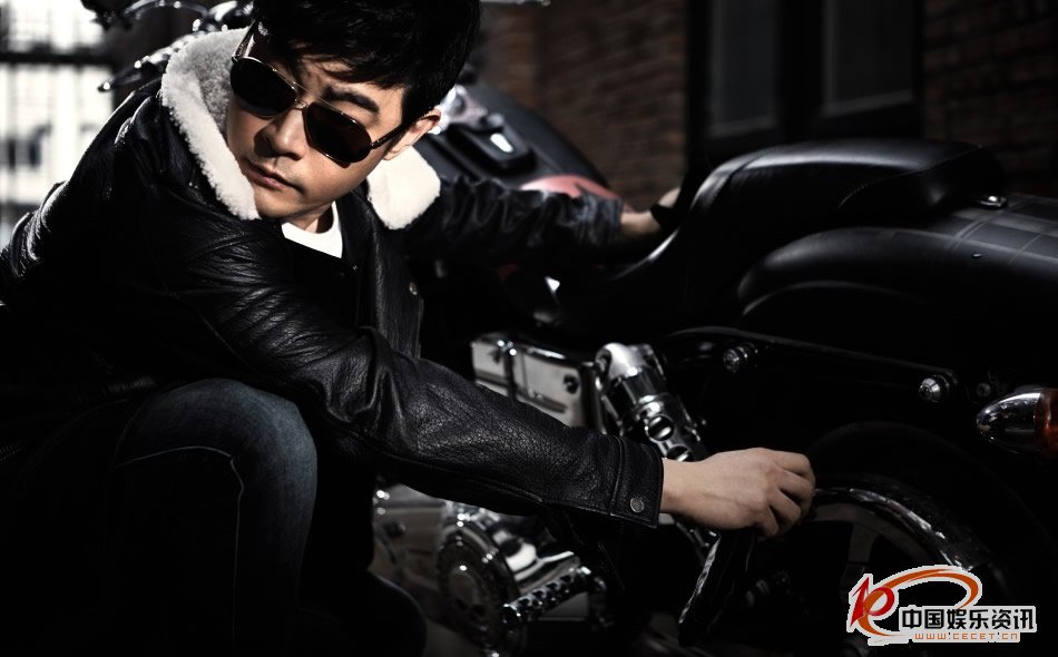 黃維德皮衣機車(chē)寫(xiě)真 戴上黑超墨鏡十分帥氣