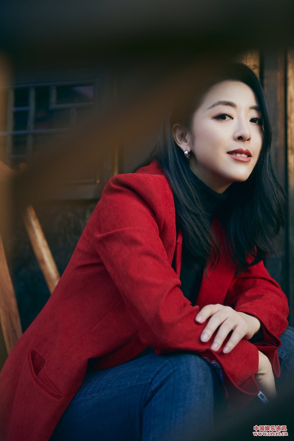 黃小蕾大紅西裝喜慶照 行走街巷歡樂(lè )氛圍