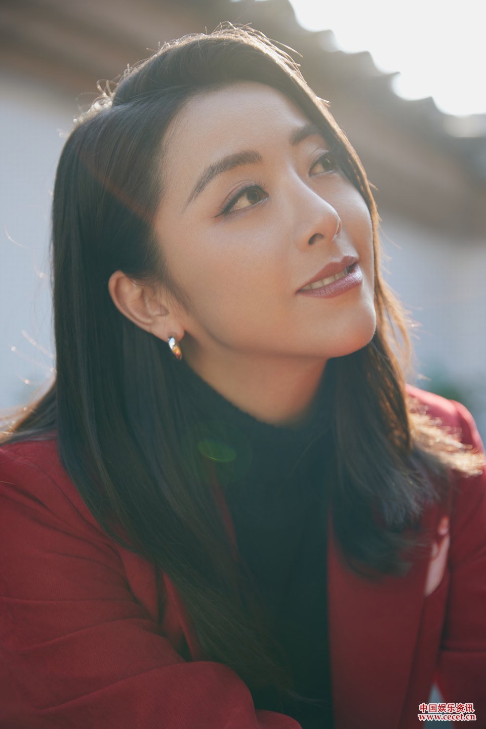 黃小蕾大紅西裝喜慶照 行走街巷歡樂(lè )氛圍