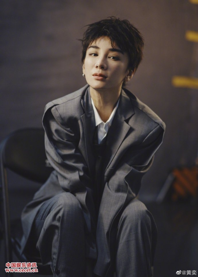 黃奕短發(fā)照 搭配灰色西裝又酷又颯十分干練