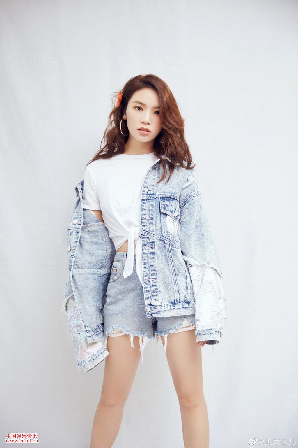 黃英入秋減齡穿搭美照 破洞牛仔隨性自然