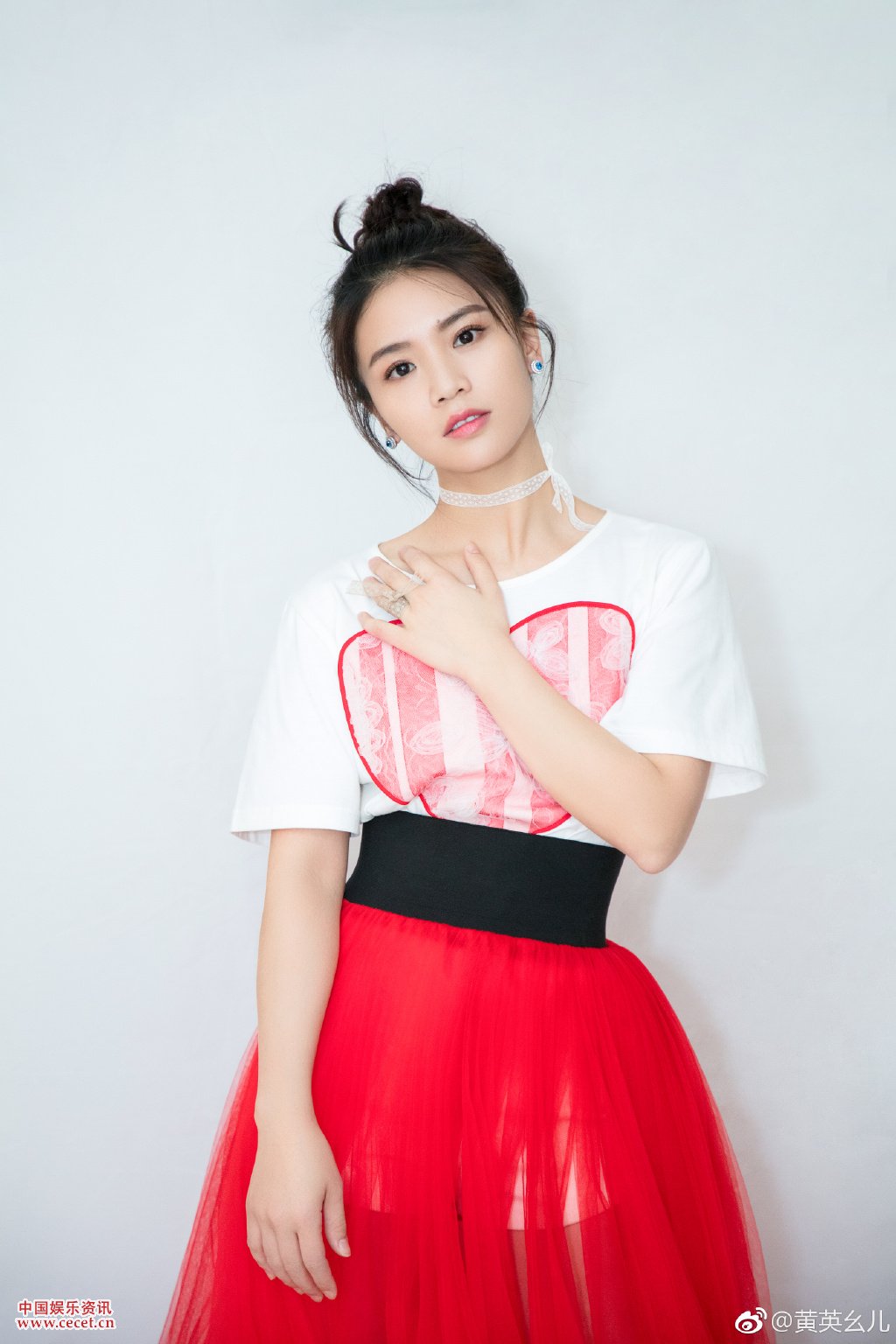黃英紅紗裹身甜美可人 黑色腰帶顯纖細腰身