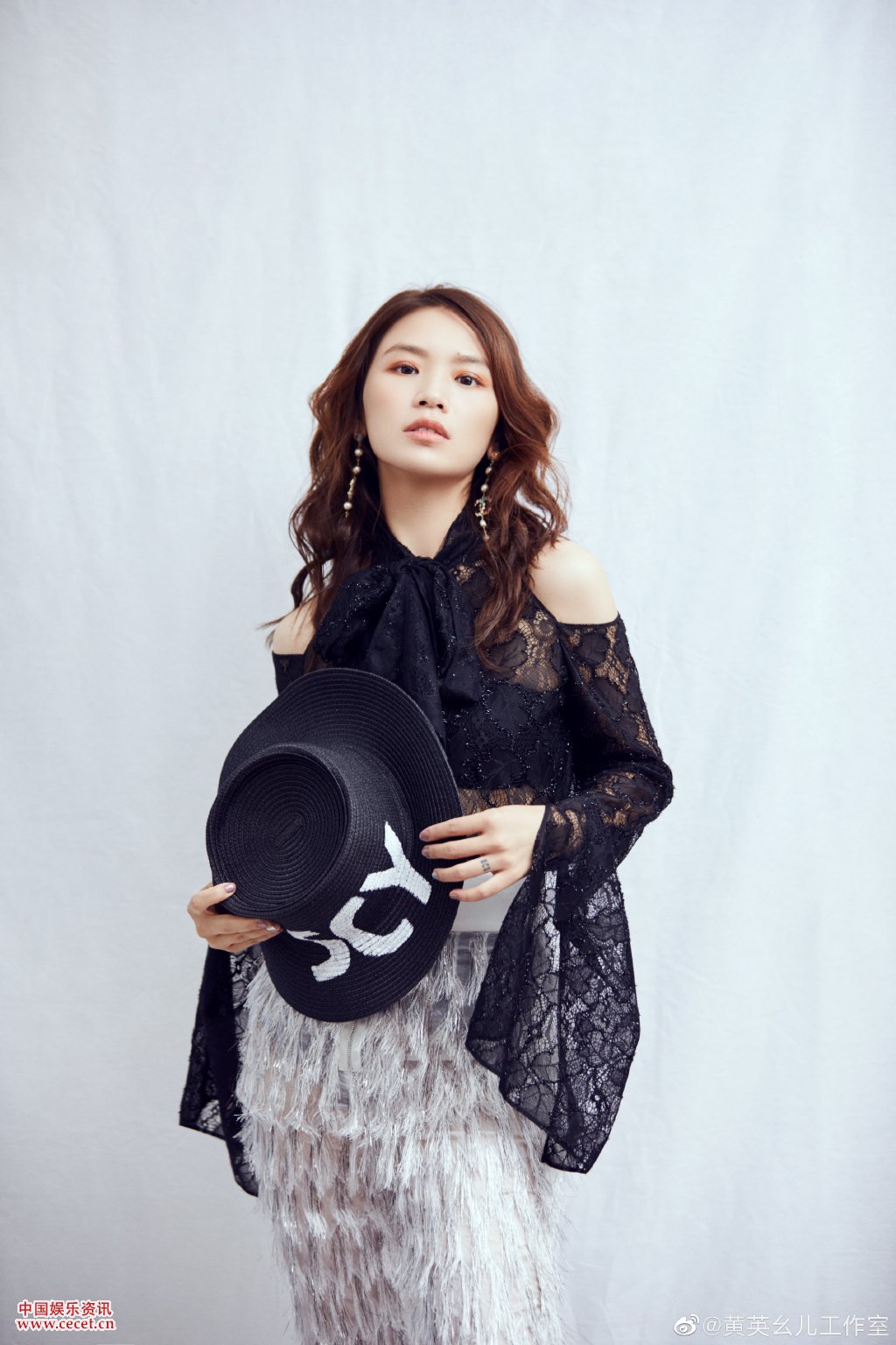黃英黑色蕾絲露肩襯衫搭配白色流蘇長(cháng)褲造型