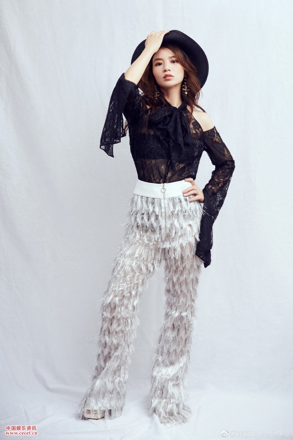 黃英黑色蕾絲露肩襯衫搭配白色流蘇長(cháng)褲造型